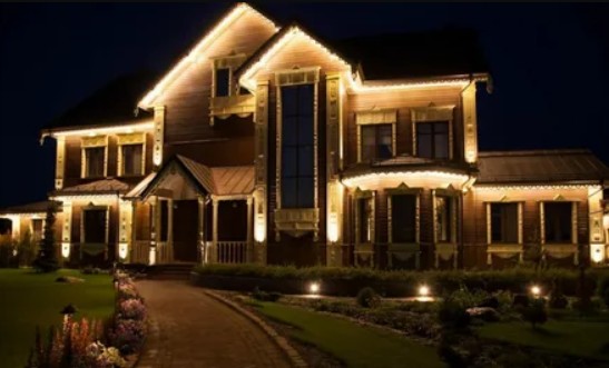 Подсветка фасада частного дома Самара недорого.