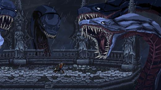 Gorgeous pixel art depicts an imposing gothic landscape accompanied by an immersive soundtrack that elevates the gameplay experience to new heights. Journey along snow-dusted mountains and castles bathed in moonlight in a tale only the faithful can survive.