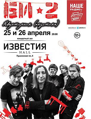Билеты на БИ-2 КВАРТИРНИК - билеты на концерт в Москве, Концертный зал "Известия Холл". Билеты на концерт БИ-2 КВАРТИРНИК без наценки по официальной цене можно забронировать и купить на сайте Билетмаркет.ру и по телефону +7(495)739-55-99. Заказ билетов на концерты в Москве. Доставка по Москве и ближнему Подмосковью.