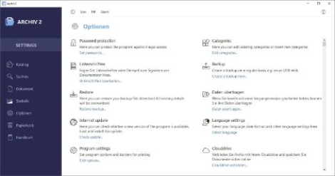 With the Softwarenetz Document Archive program you can archive and manage your most important documents. You can add PDF-documents, which you receive by email, or paper documents, which you scan, to your archive. This way you will always have access to your documents, print a copy of the document or send it per email in PDF-format. You can save your documents into different categories in order to keep overview in case of many documents. Additionally you can 'attach' several documents so you can see at a glance which documents belong together.