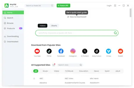 AnyVid has the ability to identify and download videos from over 1,000 websites, including various popular streaming sites like TikTok, Facebook, Instagram,Twitch, Vimeo. You can download video from any website by searching their URL in no time.