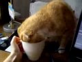 Кот очень любит кофе